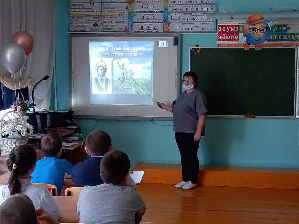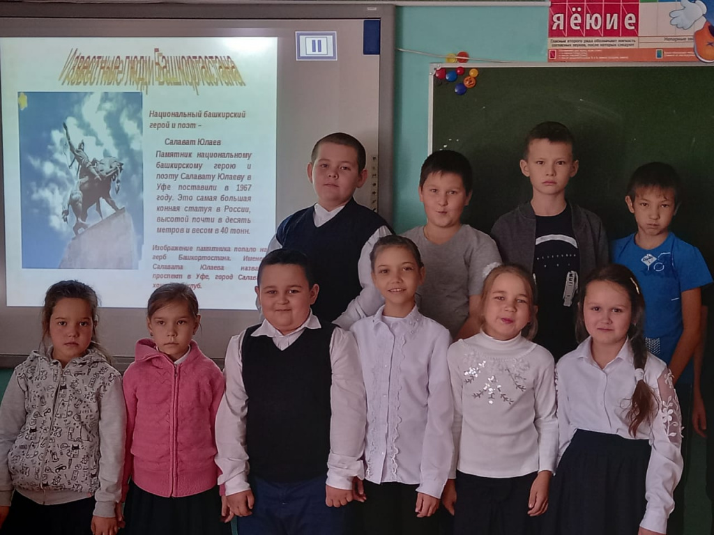 7 октября в рамках празднования Дня Республики библиотекарь Закиева С. В. провела в 1,3 классах Час громкого чтения "Рассказы о Салавате Юлаеве"