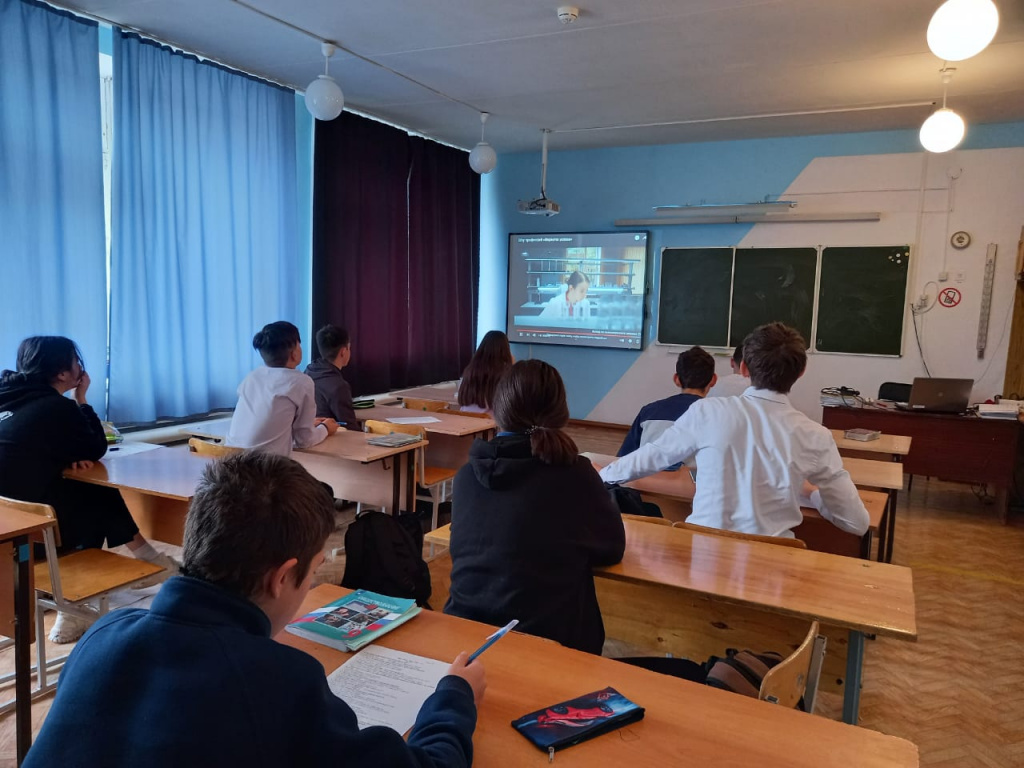 20 октября ученики школы просмотрели трансляцию очередного выпуска "Шоу профессий", посвященного компетенции "Лабораторный химический анализ"