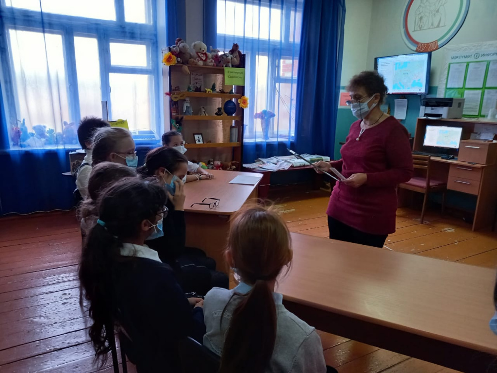 школы посетили сельскую библиотеку. Хозяйка библиотеки Габдрахманова Г.