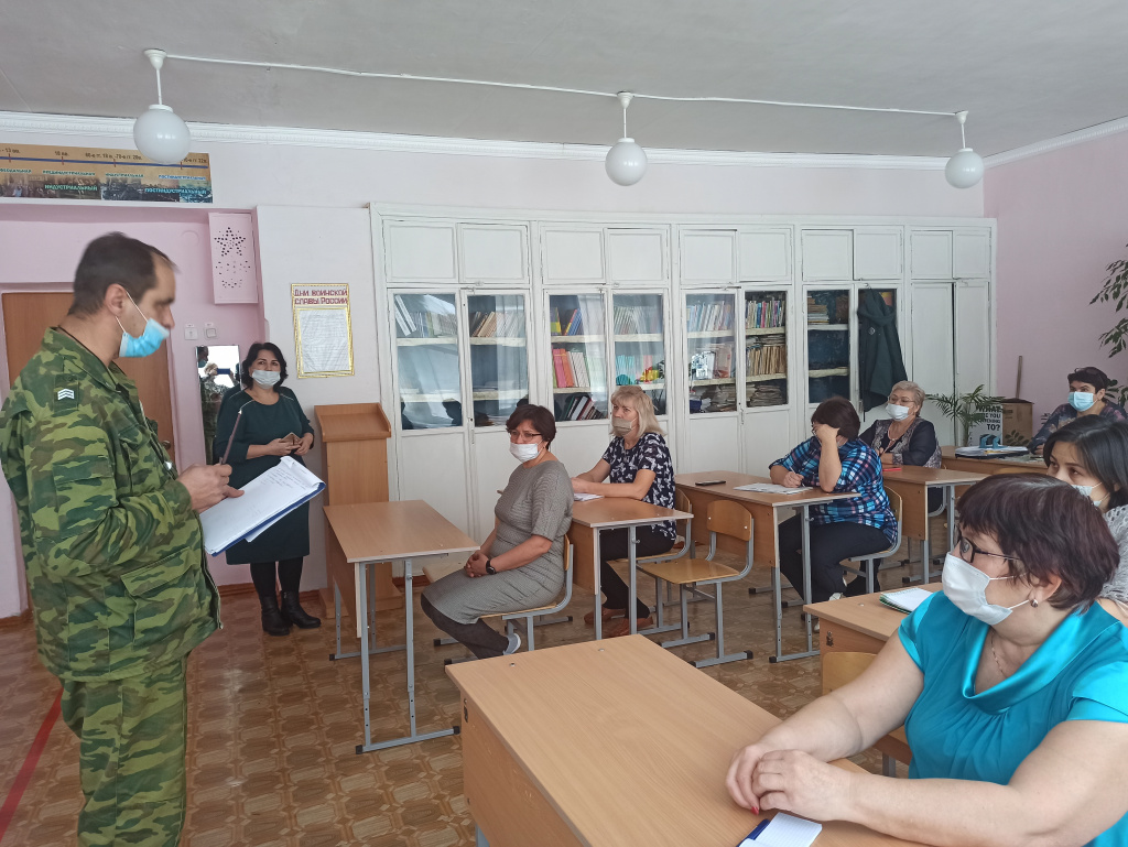 Преподаватель ОБЖ Денисов П.П. и директор школы Исаева С.Д. провели с педагогическим коллективом обучение антитеррористической нправленности.