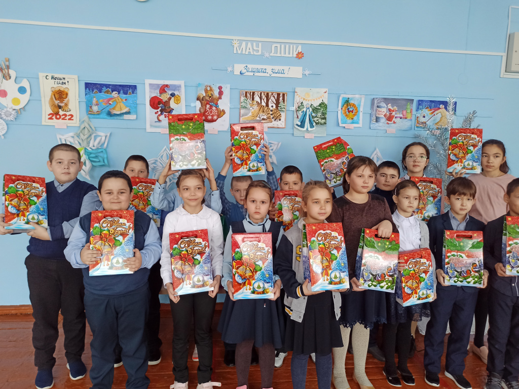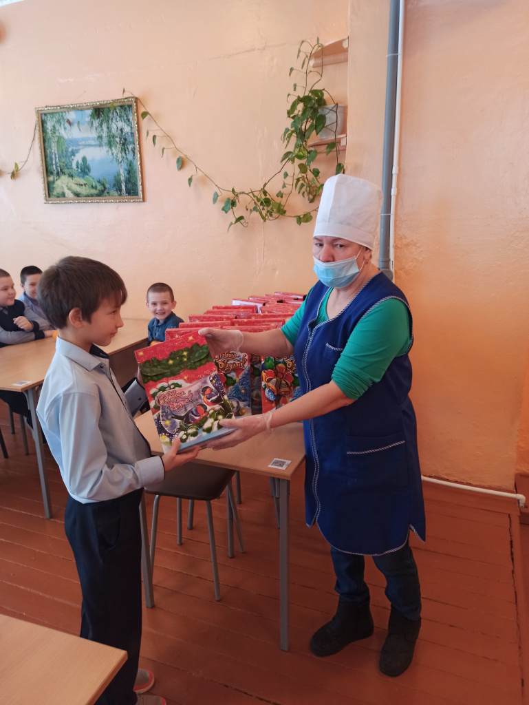 Ученики 1-4 классов, обучающиеся из многодетных малообеспеченных семей и дети с ОВЗ получили новогодние подарки