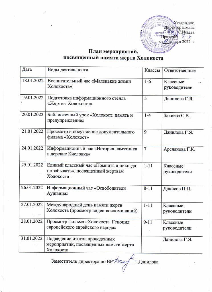 План мероприятий, посвященный памяти жертв Холокоста