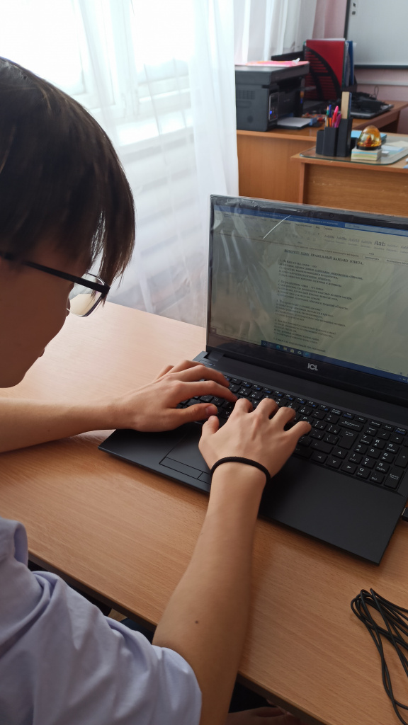 Ученики 9 класса работают на ноутбуках выделенных школе по программе ЦОС. Идёт занятие объединения " Семьеведение " ( рук. Данилова Г.Я.)
