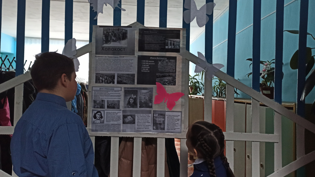 По плану мероприятий, посвященных памяти жертв Холокоста учащиеся 5 класса (рук.Данилова Г.Я.) подготовили информационный стенд