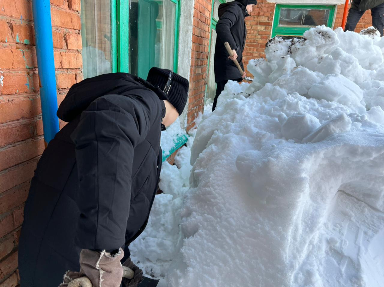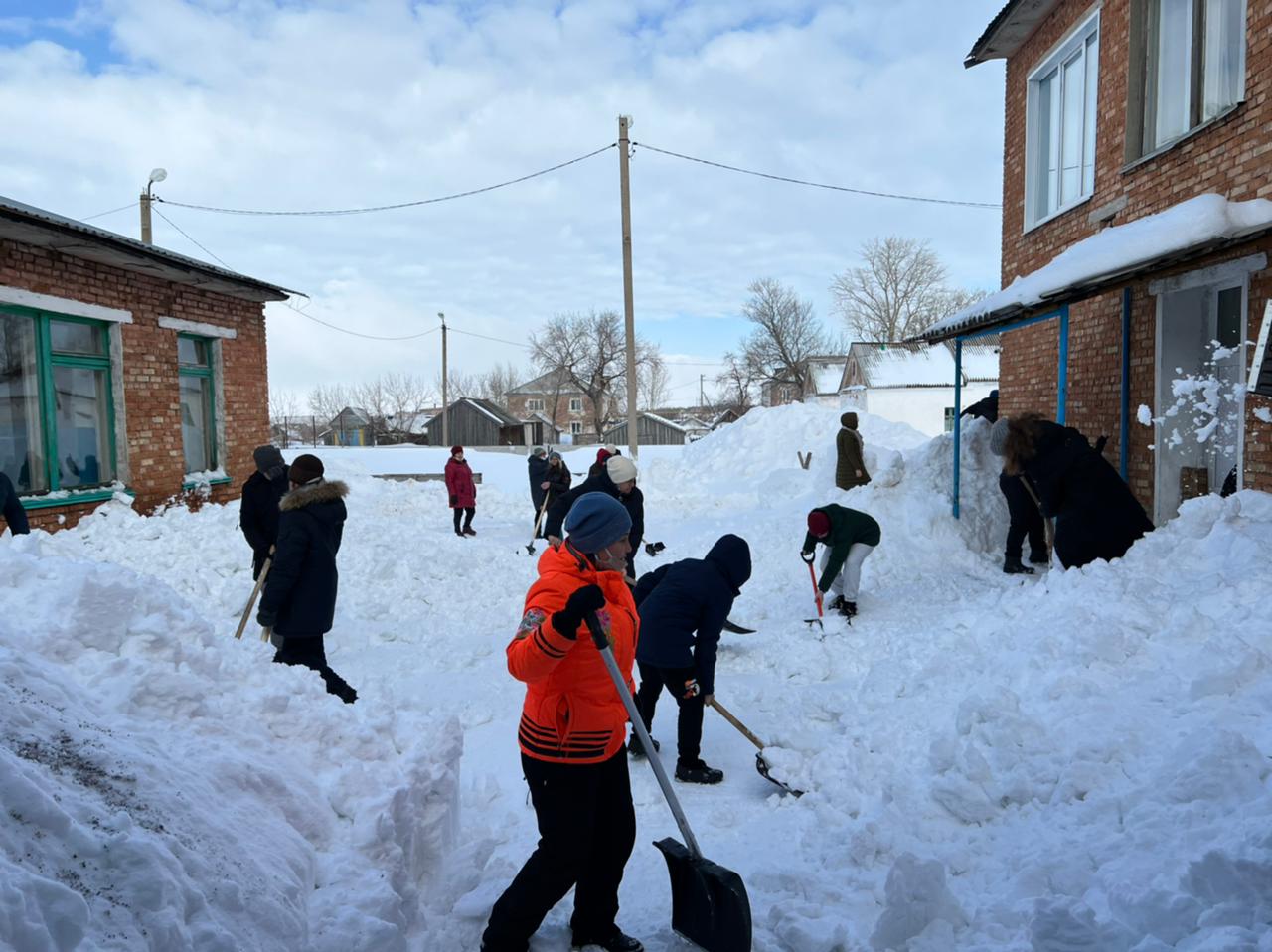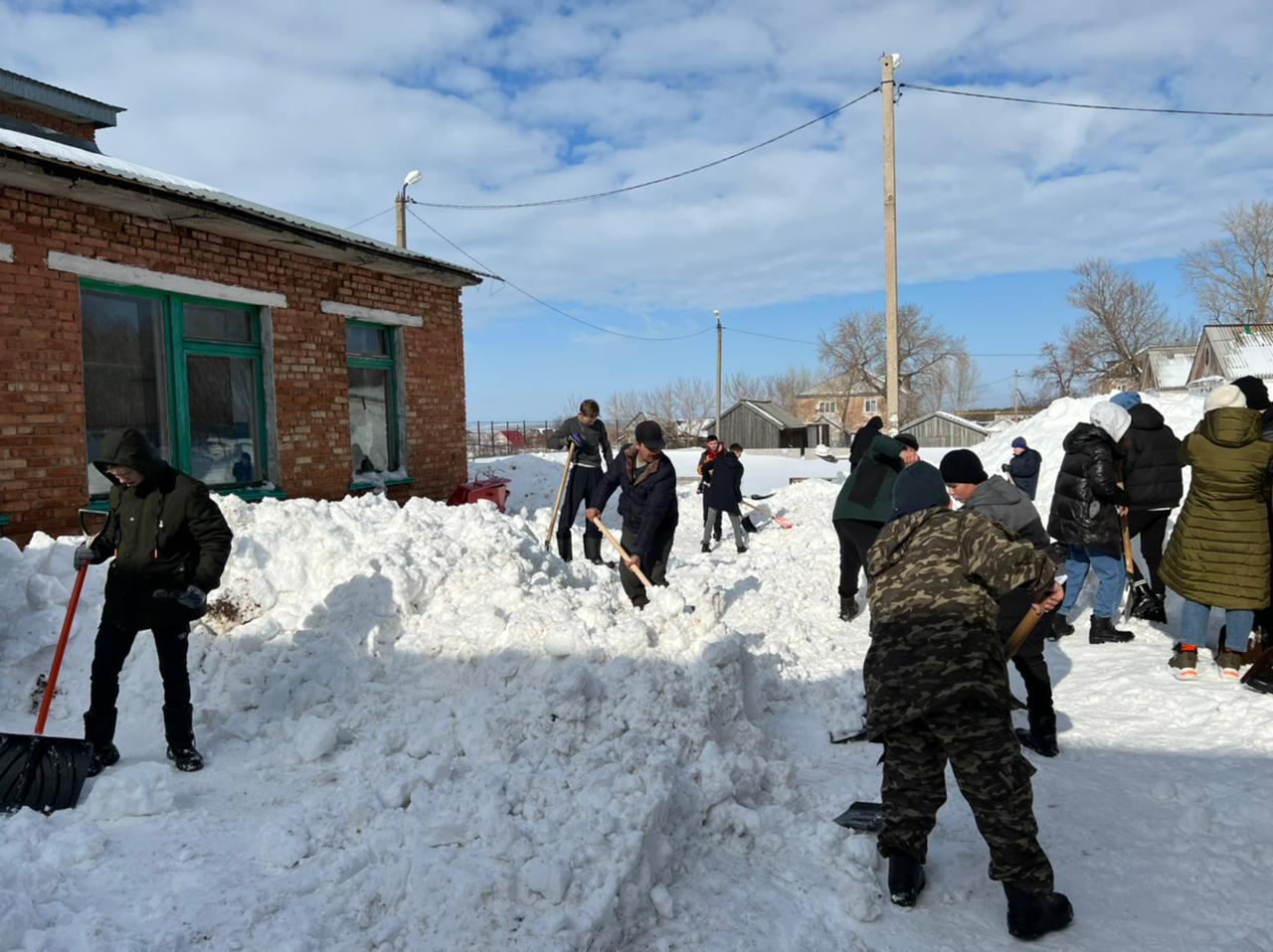 Сегодня ученики 5-11 классов принимали участие в субботнике по расчистке территории школы от снега