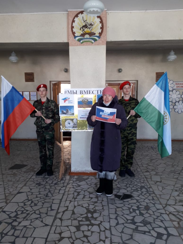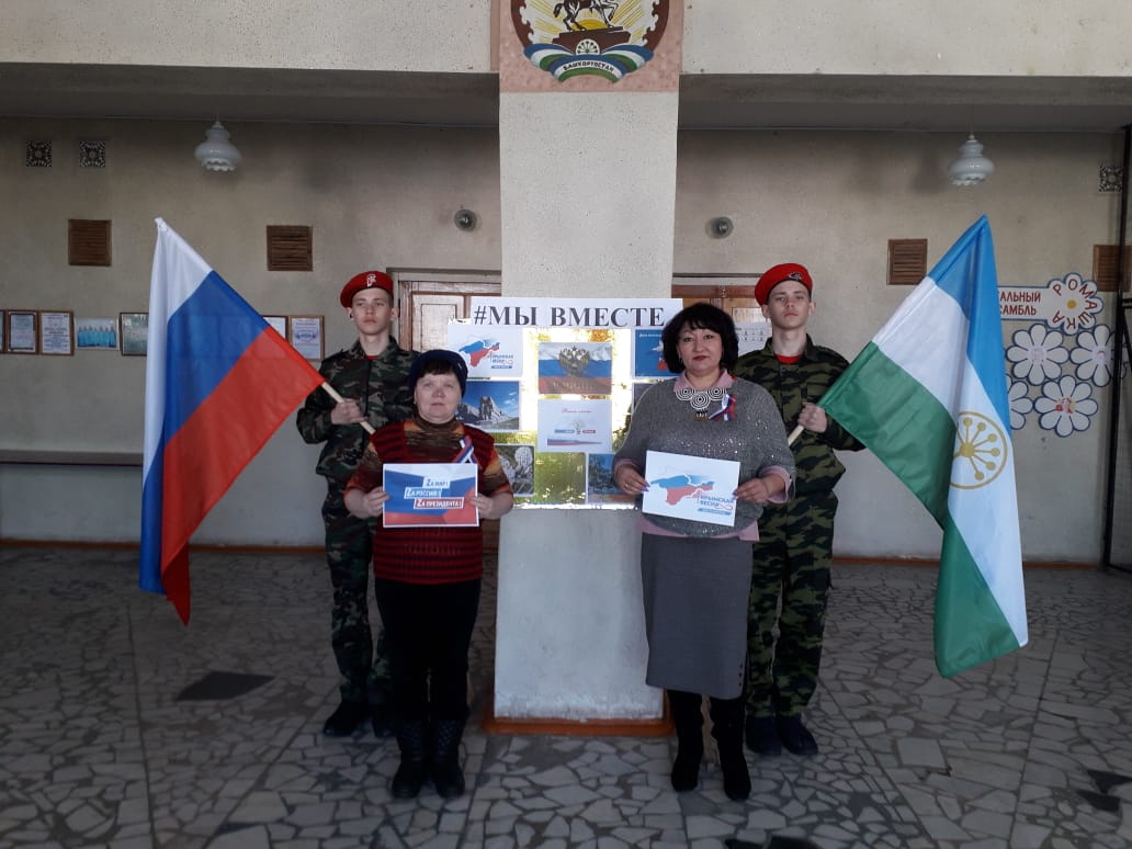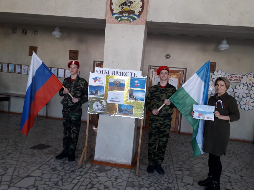 Наши ученики- юнармейцы приняли участие во флешмобе "Крым и Россия. Мы вместе", проходившем в рамках Всероссийской акции "Крымская весна".