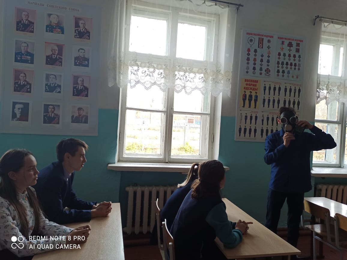 16 октября 2020 года в рамках Месячника ГО Данилова Гульнара Ягфаровна провела классный час в 11 классе на тему "Применение средств используемых при ЧС". Целью которого являлось — обучение учащихся пользованию средствами пожаротушения и средствами индивидуальной защиты органов дыхания.