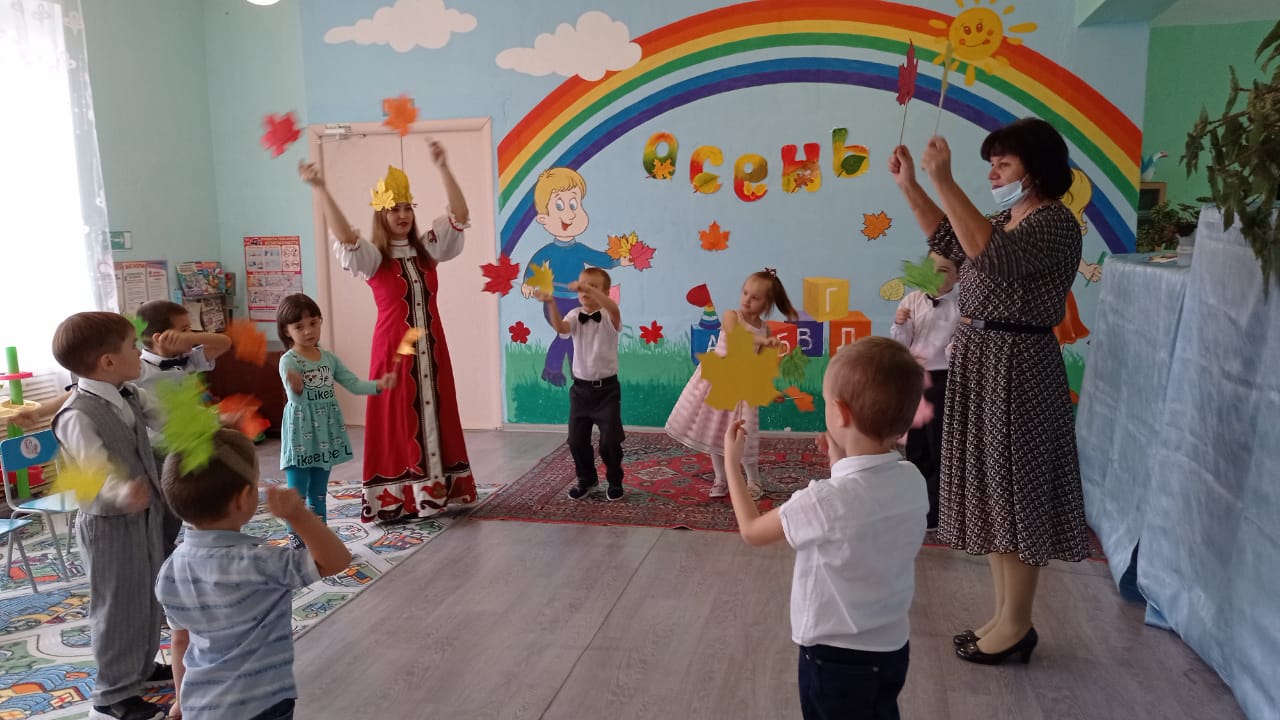 В нашем детском саду прошел осенний праздник. Дети с удовольствием читали стихи, отгадывали загадки, исполняли песни и танцы. К ребятам приходила в гости красавица «Осень» с которой пели танцевали и играли. Праздник в детском саду – это всегда удивительные чудеса, волшебные краски, звонкий смех воспитанников, море улыбок и веселья. Хоть и говорят, что осень унылая пора, но дети как никто другой, способны радоваться шороху золотистых опавших листьев под ногами, дождику, под которым так интересно гулять под зонтиком . Вот почему праздник осени в детском саду является одним из самых любимых у нашей детворы. Мероприятие было веселым, ярким, увлекательным. Воспитанники получили много позитивных эмоций. В завершении «Осень» угостила всех ребят вкусными апельсинами.