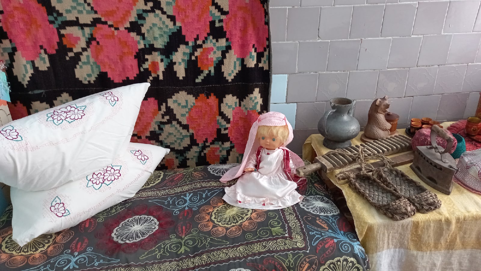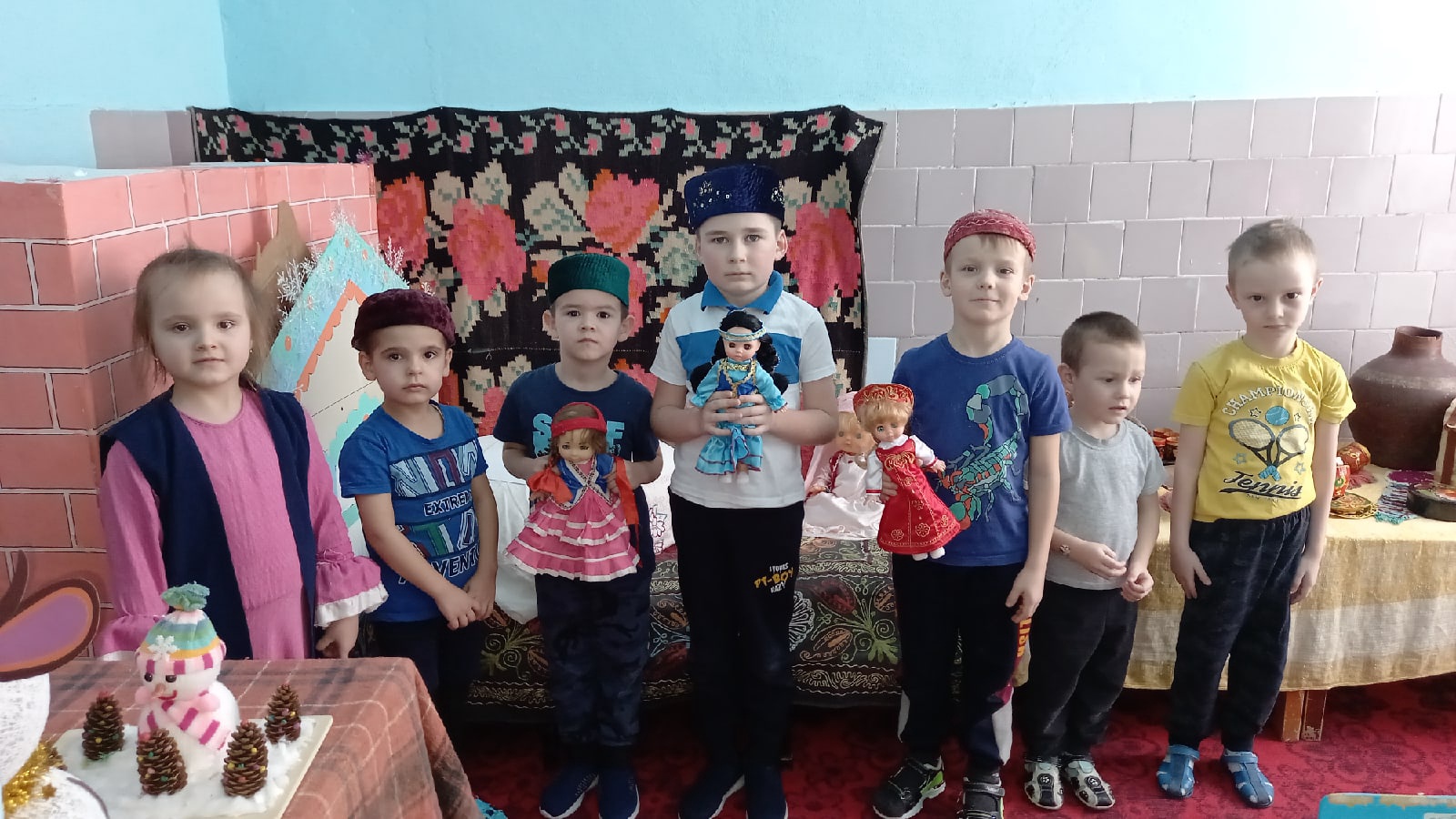 В реализации плана мероприятий, посвящённых Международному дню Родного языка, с воспитанниками старшей группы провели беседу в кабинете национального быта.